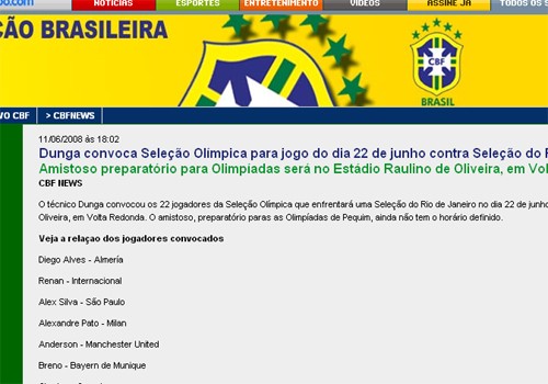 中新網(wǎng)6月12日電 巴西國(guó)奧隊(duì)主教練鄧加公布了巴西國(guó)奧隊(duì)友誼賽名單,6月22日巴西國(guó)奧隊(duì)將進(jìn)行一場(chǎng)熱身賽,拉開備戰(zhàn)北京奧運(yùn)會(huì)男足比賽的帷幕。
