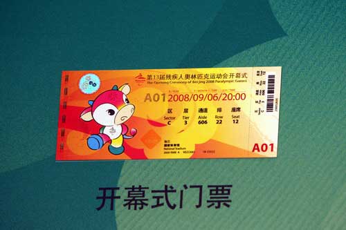 殘奧門票包括殘奧會(huì)開(kāi)幕式門票、閉幕式門票、體育比賽紀(jì)念票、熱敏票,大體的方式跟奧運(yùn)會(huì)的類別是一樣的。不過(guò),設(shè)計(jì)體現(xiàn)殘奧會(huì)的精神,開(kāi)、閉幕式主要圖案是殘奧會(huì)的吉祥物,即以“福牛樂(lè)樂(lè)”為主要的元素。