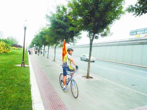 一位農(nóng)民工歷時9天,從呼和浩特市倒騎700余公里自行車到北京。而他這次“旅行”的目的,就在自行車后架的小旗子上:“支持綠色奧運(yùn)”。