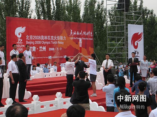 今天上午8時(shí),北京2008年奧運(yùn)會(huì)火炬接力蘭州演練點(diǎn)火儀式在中山橋廣場舉行,雖然只是全程的實(shí)戰(zhàn)演練,蘭州人民卻熱情高漲、統(tǒng)一著裝,處處可見五星紅旗和奧運(yùn)的旗幟在空中飄揚(yáng),整個(gè)金城被濃厚的奧運(yùn)氣息籠罩著。