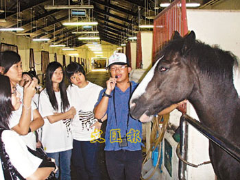 在參觀馬房時(shí),30多名中學(xué)生都好奇地東張西望,大部分都是第一次跟馬匹如此近距離地親密接觸,女生都忍不住鼓起勇氣摸摸馬頭馬頸,“它好溫馴。 睆堢麋饕贿厯崦R匹,一邊開心地說。