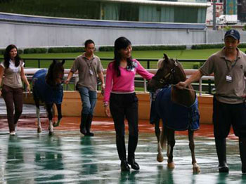 交接儀式由馬術(shù)總會(huì)主席葉錫安、美國(guó)雪特蘭小馬策騎協(xié)會(huì)代表?yè)?dān)任嘉賓,他們?yōu)樾●R穿上香港馬術(shù)協(xié)會(huì)馬衣并戴上花圈,正式移交到香港。據(jù)介紹,雪特蘭小馬經(jīng)特別訓(xùn)練,性格比其它品種的小馬溫馴,適合小朋友坐騎。她希望在北京奧運(yùn)結(jié)束后,馬術(shù)比賽能在香港持續(xù)進(jìn)行。