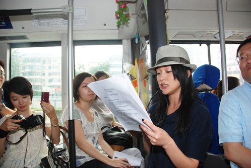 周迅近年來頻繁出現(xiàn)在各種環(huán);蚬骖愋袆由,總被媒體問道是否“作秀”?今天,在公車狹小的空間上,面對媒體提出的種種刁鉆問題,周迅與之坦誠交流:“今天挺熱的吧?公車上也很擠,路上還在堵著車,我為什么要出來做這個環(huán);顒樱磕銈?yōu)槭裁匆獊韴?bào)道這件事呢?為了通過你們的筆和鏡頭讓更多的人看到和聽到——搭乘公車、地鐵可以緩解機(jī)動車污染和交通擁堵問題,改善北京市的空氣質(zhì)量狀況,我是‘被告訴’的,你們也可以告訴更多的人。”