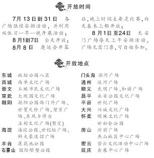 北京26處奧運文化廣場從7月13日起免費開放