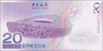 經(jīng)國(guó)際奧委會(huì)和北京奧組委批準(zhǔn),并根據(jù)澳門特別行政區(qū)第5/2008號(hào)行政法規(guī),中國(guó)銀行澳門分行獲準(zhǔn)發(fā)行第29屆奧林匹克運(yùn)動(dòng)會(huì)澳門幣紀(jì)念鈔,面值貳拾元,發(fā)行量400萬張。
