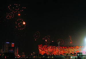 組圖:“鳥巢”試放煙花現(xiàn)場:“五環(huán)”盛放夜空(2)