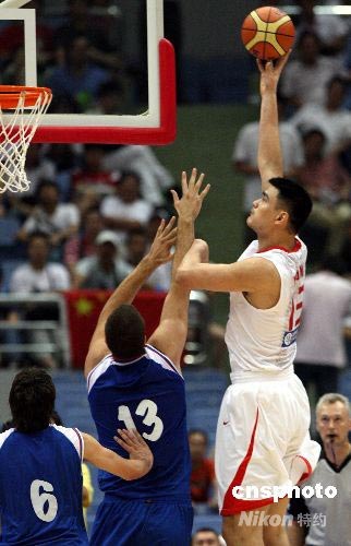 備戰(zhàn)北京奧運(yùn)會(huì)的中國男籃,7月17日晚在杭州舉行的2008斯坦科維奇洲際杯籃球賽的首場(chǎng)比賽中以96比72戰(zhàn)勝幾乎全部為年輕選手組成的塞爾維亞隊(duì)。中國隊(duì)的“擎天柱”姚明受重傷143天后首次登場(chǎng),砍下11分。中新社發(fā) 任晨鳴 攝