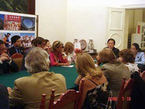 意大利媒體記者對孫玉璽大使在他們赴京采訪奧運前邀請大家出席北京奧運會倒計時20天的慶祝活動表示感謝,祝愿北京奧運取得圓滿成功,并表示將努力投入奧運報道工作,增進意民眾對北京奧運和今日中國的了解。(博源)