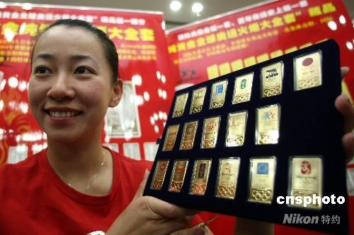 圖:"純黃金全球奧運火炬大全套"在北京面世(2)