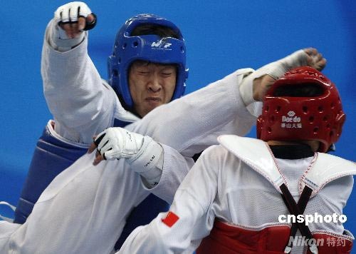 朱國將代表中國出戰(zhàn)北京奧運會跆拳道男子80公斤級比賽。中新社發(fā) 杜洋 攝