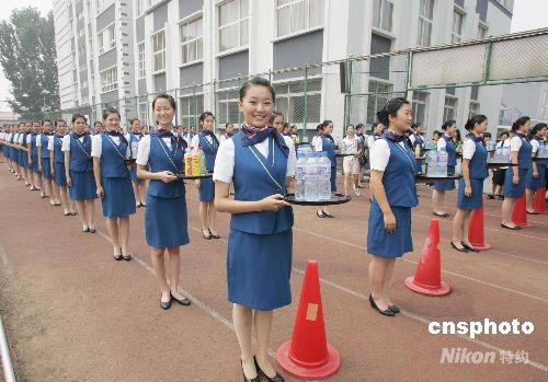 七月二十四日,北京氣溫最高三十四攝氏度。約一千五百名奧運(yùn)場(chǎng)館貴賓服務(wù)志愿者,在操場(chǎng)面帶笑容進(jìn)行培訓(xùn)。賽時(shí),該批志愿者將在“鳥巢”、曲棍球場(chǎng)、射箭場(chǎng)和網(wǎng)球中心等四個(gè)奧運(yùn)場(chǎng)館,提供茶點(diǎn)和餐飲食品的售賣服務(wù)。中新社發(fā) 杜燕 攝