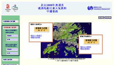 公眾人士可以從天文臺(tái)的馬術(shù)比賽天氣網(wǎng)站獲得最新比賽場地的詳細(xì)天氣預(yù)測(cè)、天氣警告、實(shí)時(shí)天氣狀況及環(huán)境保護(hù)署提供的賽場區(qū)域空氣污染指數(shù)。