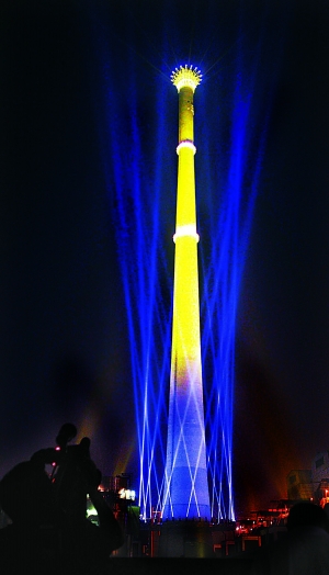 位于四惠橋西北角的國華電力公司高240米的煙囪,是北京地標(biāo)性建筑。煙囪整體進(jìn)行了銀灰色噴涂處理,白天與天空顏色融為一體。夜晚,煙囪觀景平臺上增設(shè)燈光照明,煙囪頂部安裝了花瓣造型的燈具,如同華麗皇冠懸掛于空中,絢爛奪目、五彩斑斕。