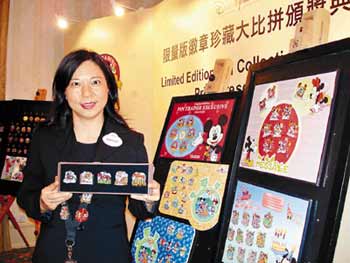 圖為迪斯尼徽章大使展示一系列的徽章。