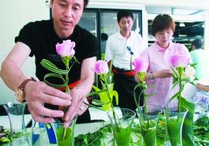 奧運(yùn)村的花店地方不大,但新鮮的花材、精美的花瓶和各種可供租擺的綠色小植物一應(yīng)俱全。插花大師們也已經(jīng)在柜臺(tái)一側(cè)靈活地捆扎花束。奧運(yùn)村花店將會(huì)在奧運(yùn)賽事階段提供禮儀用花、外事接見用花及生日用花等,目前可供選擇的成品花樣式達(dá)到36種。