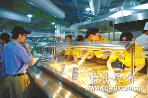 實景:餐廳也是奧運村里的主題。奧運村的主餐廳位于北部國際區(qū)的東側(cè),分為運動員餐廳和員工餐廳,在奧運賽時提供24小時的餐飲服務(wù)。走進運動員餐廳,第一個感覺就是大,放眼望去,四周密密麻麻都是桌椅。據(jù)介紹說,賽時主餐廳可以同時容納5000人就餐。整個餐廳設(shè)有四大餐區(qū):國際餐區(qū)、地中海餐區(qū)、亞洲餐區(qū)及中國餐區(qū)。地中海餐區(qū)的意大利面和清蒸魚,味道還比較爽口,非常適合歐洲人。在餐廳內(nèi),人們還驚喜地發(fā)現(xiàn)了中國的特色食品——全聚德的烤鴨。據(jù)介紹,奧運村開村后,餐廳內(nèi)的每一道菜品都會配有營養(yǎng)卡,用中英法三種文字標識,將標注食品的原材料構(gòu)成,菜品的營養(yǎng)程度,食品所含卡路里等。