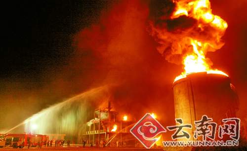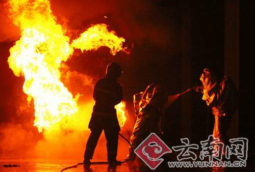 現(xiàn)場(chǎng)指揮部立即調(diào)動(dòng)昆明、普洱、保山、西雙版納、麗江5地特勤部隊(duì)5輛戰(zhàn)斗車31名特勤隊(duì)員,對(duì)化工廠職工宿舍火災(zāi)進(jìn)行撲救。伴隨著呼嘯的警笛聲,消防照明車豎起照明燈,將起火的職工宿舍照的如同白晝。