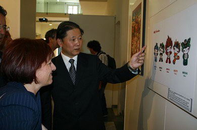 孫玉璽大使向意大利友人介紹北京奧運。