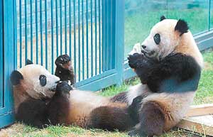 前段時間《功夫熊貓》在國內(nèi)院線的熱映,讓從賣面小二成長為神龍大俠的“主人貓”阿寶,成為了無數(shù)小朋友和肥胖人士心中頂禮膜拜的偶像。隨著北京奧運(yùn)會的漸漸臨近,四川臥龍自然保護(hù)區(qū)專門為北京奧運(yùn)會精心挑選的8只兩歲大奧運(yùn)熊貓,在從汶川大地震“劫后余生”后被運(yùn)到了北京,自6月6日公開亮相后,已吸引了上百萬中外游客。如今,它們中的大部分已被認(rèn)養(yǎng)。