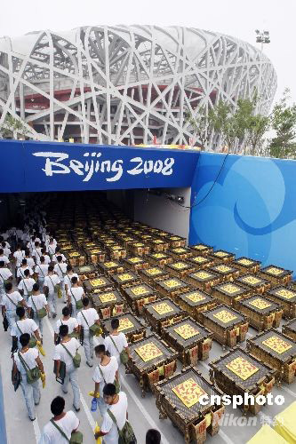 7月30日,第29屆夏季奧運會開幕式在北京國家體育場“鳥巢”進(jìn)行封閉式彩排,參演人員和道具陸續(xù)入場。 中新社發(fā) 杜洋 攝