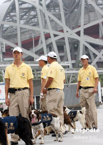 第29屆夏季奧運(yùn)會(huì)開幕式彩排在北京國(guó)家體育場(chǎng)“鳥巢”內(nèi)封閉進(jìn)行,武警、特警現(xiàn)場(chǎng)戒備,保安嚴(yán)密。 中新社發(fā) 武仲林 攝