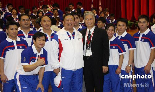 出征第二十九屆奧運(yùn)會(huì)的中華臺(tái)北隊(duì)合計(jì)一百三十三人,七月三十日在高雄左營(yíng)運(yùn)動(dòng)選手訓(xùn)練中心正式成軍。 中新社發(fā) 曾嘉 攝