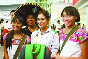 在北京首都機(jī)場(chǎng)接機(jī)大廳,戴著墨西哥傳統(tǒng)草帽頗顯怪異。昨日,3名墨西哥人就一直戴著能表明其身份的特殊帽子,等候本國(guó)運(yùn)動(dòng)員的到來。前來接機(jī)的攝影記者紛紛拿起相機(jī),對(duì)著他們猛拍。在這一小撮人群中,還有一對(duì)雙胞胎女孩,她們是中墨混血兒,不過不會(huì)一句漢語。妹妹拿著一面墨西哥國(guó)旗,她們的父親是中國(guó)人,他告訴記者,“這幾個(gè)人從墨西哥來北京看奧運(yùn),今天自發(fā)前來接機(jī)!