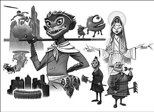 創(chuàng)作者把這個猴子設定從歐洲出發(fā),走向東方的旅程。而創(chuàng)作者,就是打造出著名的英國卡通虛擬樂隊Gorillaz的戴蒙·阿爾巴和杰米·惠勒。該樂隊始終以卡通虛擬人物作為臺前歌手,推出過不少獲獎唱片。阿爾巴是“幕后”歌手,惠勒是卡通形象設計者。他們甚至還制作了一臺名為《猴子西游記》的音樂劇,以及一張唱片,其中包括《蟠桃盛會》和《我愛菩薩》等。惠勒表示,制作這部動畫片的理念,就在于“2分鐘內完成《東游記》,讓他們直達奧林匹克會場!睂O悟空還能體現出奧運精神——非凡的力量和敏捷度與積極正面的態(tài)度。本報記者 朱光