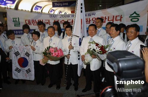 8月1日,由54名官員、教練、運(yùn)動員組成的首批韓國代表團(tuán)飛抵北京首都機(jī)場。韓國代表團(tuán)總?cè)藬?shù)為389名,其中運(yùn)動員267名,官員、教練等122名。運(yùn)動員中男運(yùn)動員160名,女運(yùn)動員107名,他們當(dāng)中有七成第一次參加奧運(yùn)會。 中新社發(fā) 劉新 攝