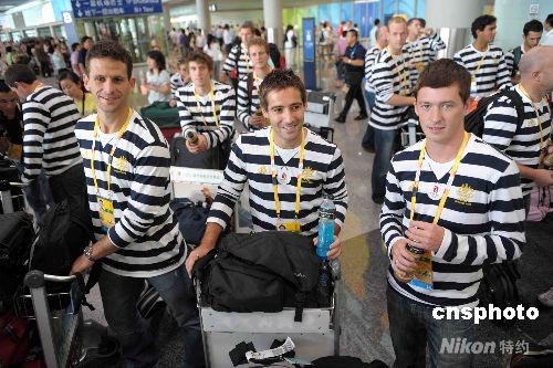 8月1日,澳大利亞曲棍球男隊(duì)一行飛抵北京,參加本屆夏季奧運(yùn)會(huì)。澳大利亞男隊(duì)將于8月11日對(duì)陣加拿大隊(duì)展開(kāi)首場(chǎng)曲棍球賽。 中新社發(fā) 陳文 攝