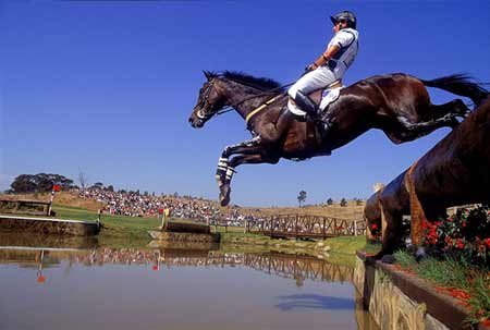 三項(xiàng)賽可說是“全能馬術(shù)比賽”,結(jié)合了盛裝舞步賽、越野賽和場地障礙賽,分個(gè)人賽和團(tuán)體賽。騎手須以同一馬匹完成連續(xù)數(shù)天的賽事。