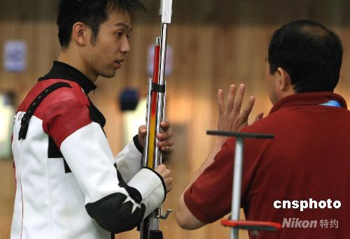 8月2日上午,雅典奧運(yùn)會(huì)射擊冠軍、中國(guó)著名神槍手朱啟南在北京奧運(yùn)會(huì)射擊賽場(chǎng)靜心訓(xùn)練,3組實(shí)彈射擊,30發(fā)獲得299環(huán)的優(yōu)異成績(jī)。 中新社發(fā) 任晨鳴 攝