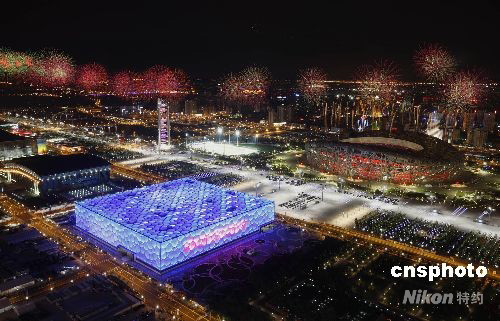 8月2日晚,北京奧運會舉行開幕式彩排,雖然只施放了總量25%的煙花,但還是把整個奧林匹克公園映照得美輪美奐。 中新社發(fā) 姜平 攝