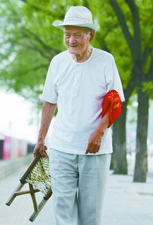 103歲的付漪泉老人每天上街巡邏! ”緢笥浾 韓萌 攝