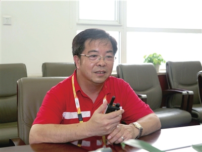 干銀輝在午飯間隙接受記者采訪。曹瑾攝
