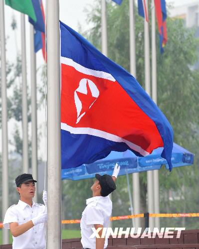 參加北京奧運(yùn)會(huì)的朝鮮奧運(yùn)代表團(tuán)4日在北京奧運(yùn)村舉行了升旗儀式。面對(duì)現(xiàn)場(chǎng)眾多記者的采訪,包括金章山團(tuán)長(zhǎng)在內(nèi)的朝鮮代表團(tuán)成員均未給予任何回答。