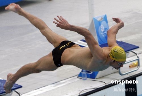 8月5日,澳大利亞游泳隊(duì)在北京“水立方”適應(yīng)場地,為即將來臨的比賽做準(zhǔn)備。澳大利亞代表團(tuán)一半獎牌都來自于游泳項(xiàng)目,本屆奧運(yùn)會中澳大利亞將與美國隊(duì)在賽場上一爭高下。中新社發(fā) 杜洋 攝