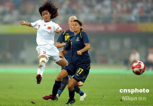 8月6日,北京奧運(yùn)會(huì)女足小組賽首輪比賽全面打響,中國女足在天津奧林匹克球場迎戰(zhàn)瑞典隊(duì)。下半場第73分鐘,中國女足9號韓端大力施射破門,打入致勝一球。 中新社發(fā) 陳文 攝