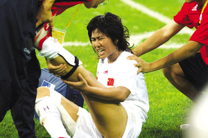 韓端拼搶兇狠導(dǎo)致腿抽筋。