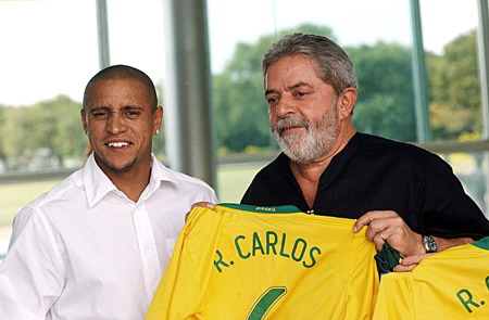 巴西總統(tǒng)盧拉對(duì)足球情有獨(dú)衷。