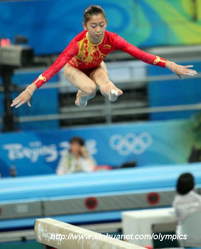 中國體操選手程菲進(jìn)行平衡木訓(xùn)練。