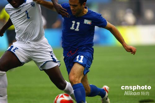 8月7日,北京奧運男足小組賽開賽,洪都拉斯隊與意大利隊的比賽在秦皇島奧體中心舉行,最終意大利隊3:0戰(zhàn)勝洪都拉斯隊。中新社發(fā) 劉新 攝