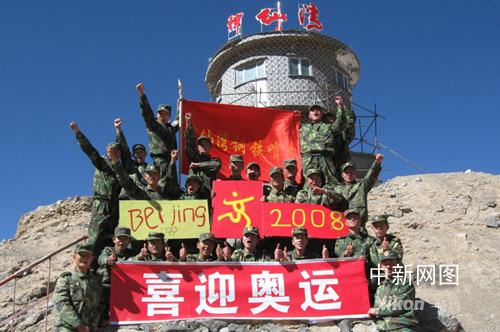 中新網(wǎng)烏魯木齊8月8日電 (董永彪) 2008北京奧運(yùn)即將召開(kāi),位于新疆喀喇昆侖山脈的神仙灣哨所官兵親手自制了奧運(yùn)標(biāo)志,把對(duì)奧運(yùn)的美好祝愿化作戍邊守防的具體行動(dòng),表達(dá)對(duì)北京奧運(yùn)的祝福。
