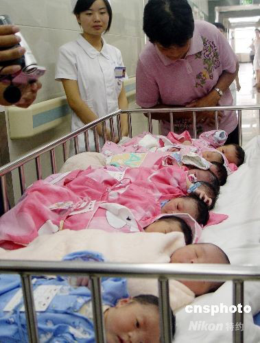 八月八日,河南鄭州一家醫(yī)院內(nèi)剛洗過澡的幾位“奧運(yùn)寶寶”。雖然專家一再?gòu)?qiáng)調(diào)擇日剖宮產(chǎn)不可取,但為生個(gè)“奧運(yùn)寶寶”,鄭州市還是有近二百名準(zhǔn)媽媽預(yù)約進(jìn)行剖宮產(chǎn)。中新社發(fā) 李志全 攝