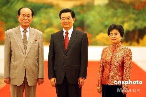 圖:胡錦濤夫婦歡迎金永南出席奧運會