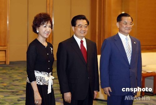 8月8日,中共中央總書記胡錦濤在北京人民大會堂會見中國國民黨榮譽(yù)主席連戰(zhàn)。中新社發(fā) 盛佳鵬 攝