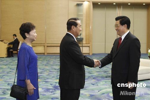 8月8日,中共中央總書記胡錦濤在北京會見了應(yīng)邀出席北京奧運會開幕式的親民黨主席宋楚瑜。中新社發(fā) 盛佳鵬 攝