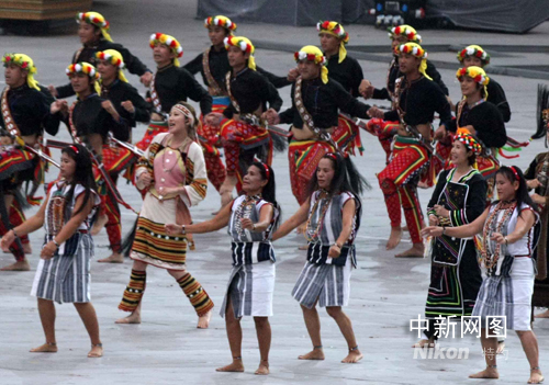 圖:高金素梅文化團(tuán)隊(duì)在“鳥巢”內(nèi)表演