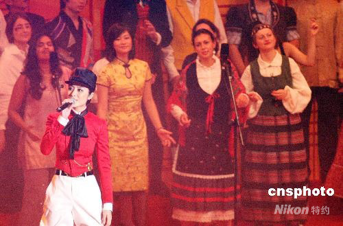 圖:歌星陳慧琳在奧運馬術(shù)歡迎晚會上高歌