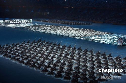 8月8日晚8時(shí)8分,第二十九屆夏季奧運(yùn)會(huì)在北京的國(guó)家體育場(chǎng)——鳥巢隆重開幕。圖為開幕式文藝表演展現(xiàn)中國(guó)古老的活字印刷術(shù)。中新社發(fā) 任晨鳴 攝